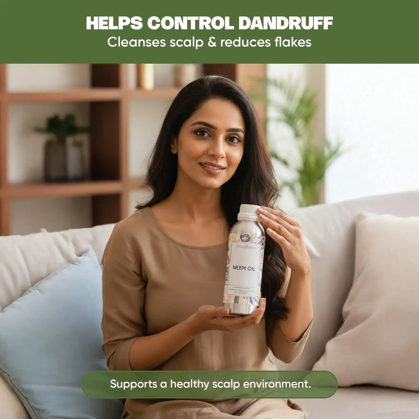 Dandruff is a common issue suffered by most people these days. However, applying our organic Neem Oil on your hair and scalp and massage will remove all the existing dandruff present and will prevent them in the future as well.Product Specifications